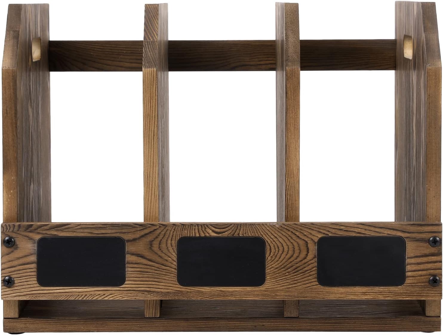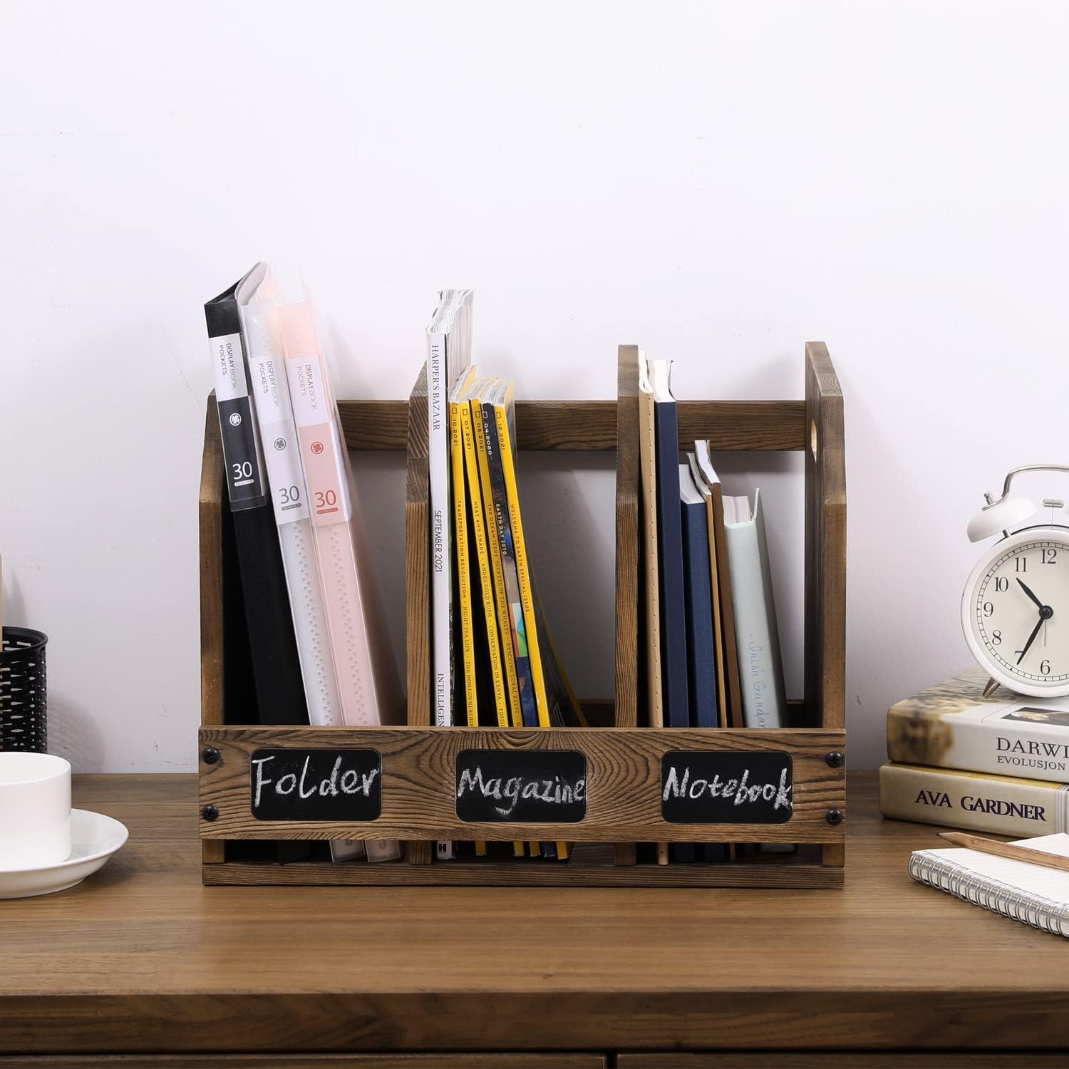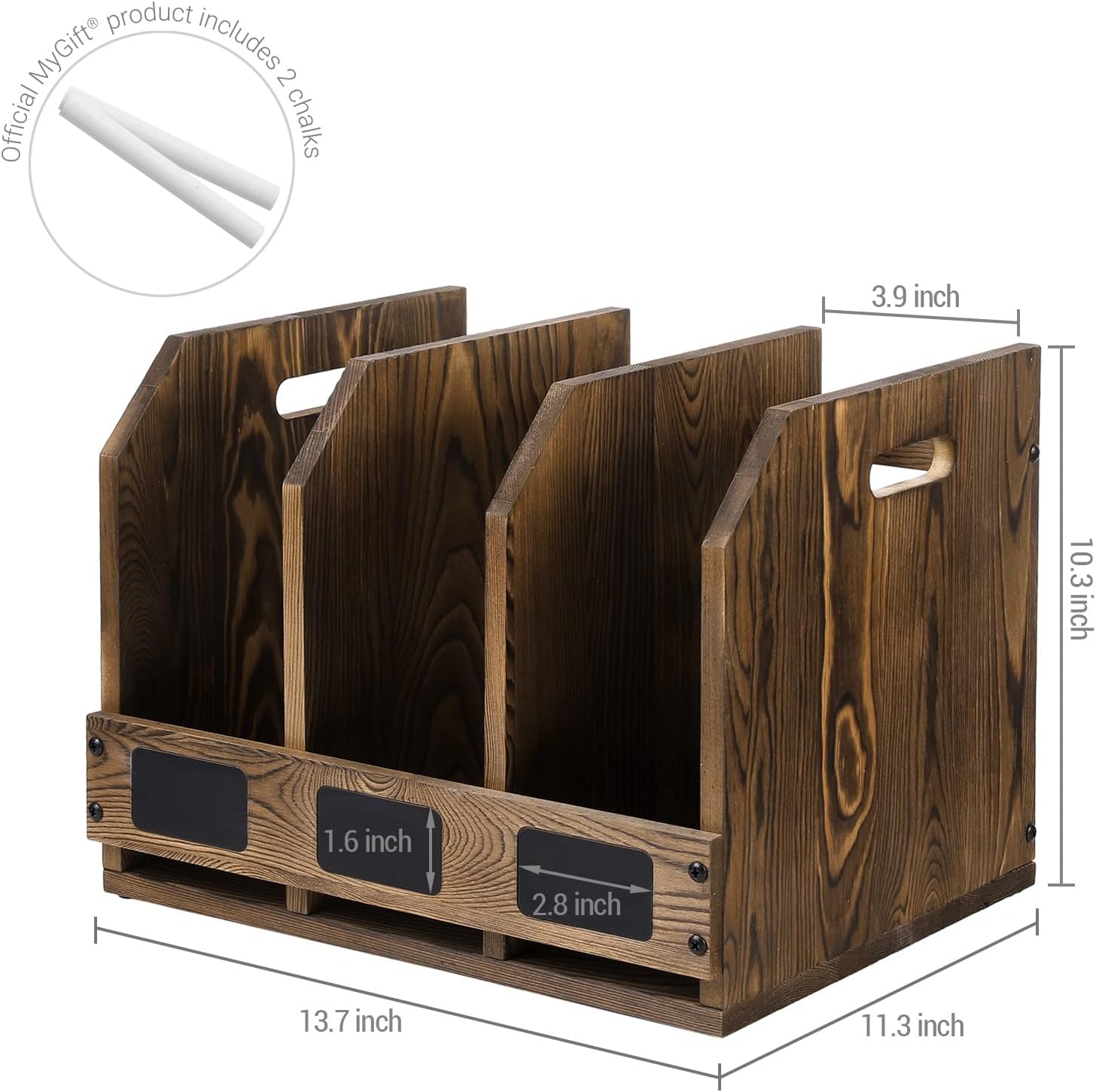 MyGift Office Desktop Document File Folder Rustic Burnt Brown Wood Binder Storage Organizer Rack with 3 Compartments and Chalkboard Labels