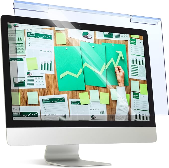 - Quick Setup: Computer screen protector mounts easily! Just peel the matte protective film from both sides and position it over the monitor top.