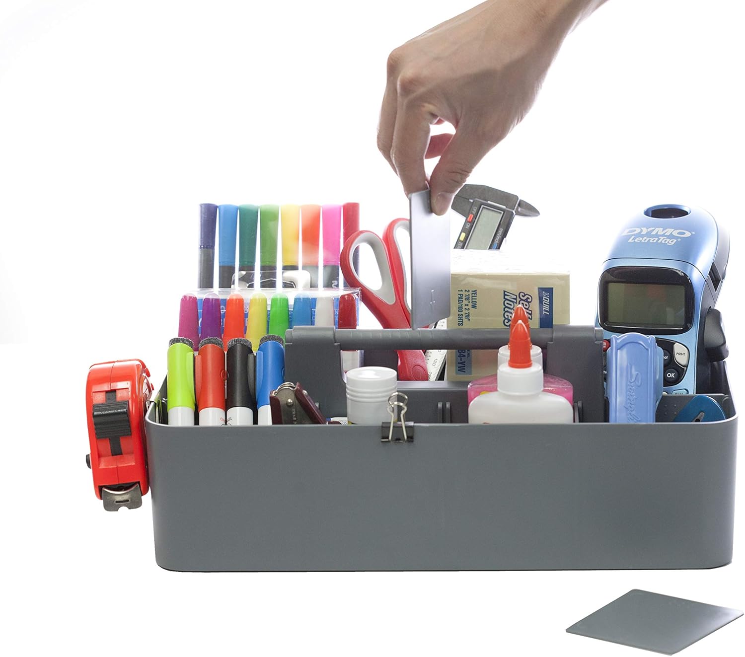 -Large Portable Caddy, DIY Dividers, 8 Compartments, School Office Supplies Home Business Organizer,Portable Basket with Handle Storage Made in USA (6 PACK, Orion Gray)
