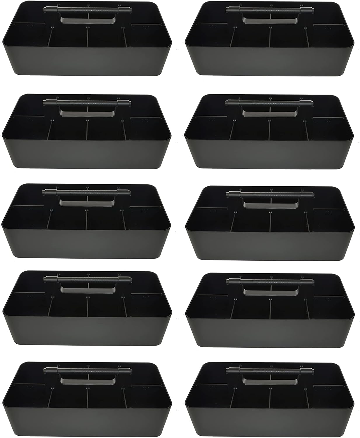 -Large Portable Caddy, DIY Dividers, 8 Compartments, School Office Supplies Home Business Organizer,Portable Basket with Handle Storage Organizer Modern Made in USA (10 PACK, Black)