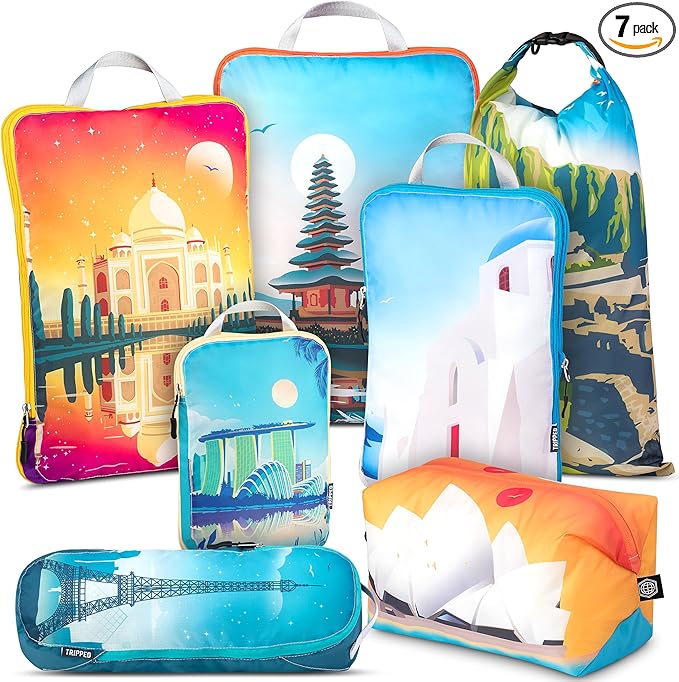 Large Compression Packing Cubes for Travel-Packing Cube Luggage Organizers 7 Piece Set for Checked Luggage-Ultralight, Expandable/Compression Bags by TRIPPED Travel Gear (Bucketlist)