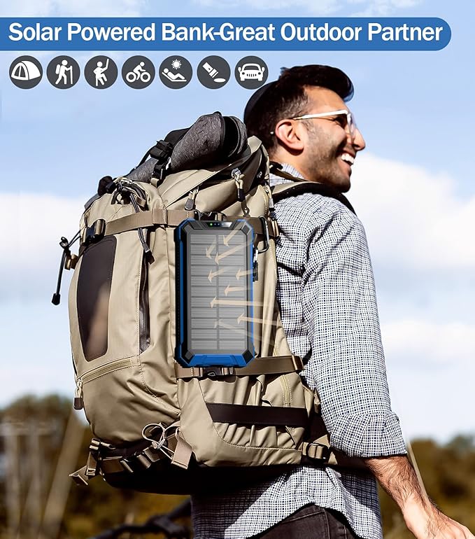 - [Sturdy&Durable Design for Outdoor] This solar battery pack is well made to be Waterproof/Shockproof/Dust-proof, which can withstand the harsh environment outdoors. Itβs equipped with Dual super bright LED lights, a Must-Have tool for outdoor activities and home emergencies.