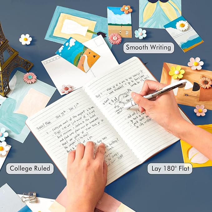 - These travel journals bulk for women have 92 blank lined pages (46 sheets), which would be sufficient for daily usage. The note taking notebooks have a smooth cover, round corners and tight stitching, which are designed to lay 180° flat. Some quick notes can help you remember important dates and find the page you want in a very short time.