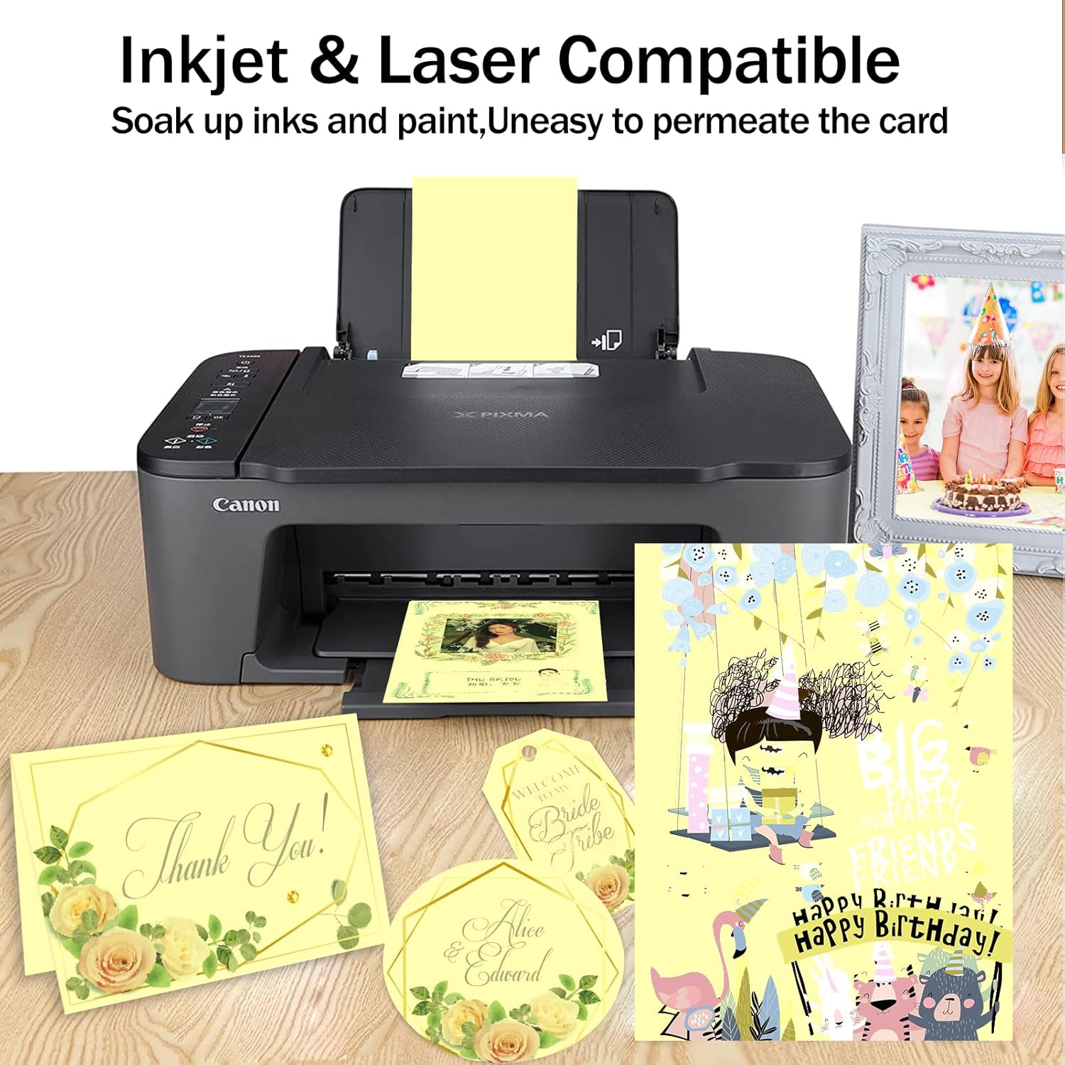 - Printer Friendly: Sturdy and versatile, our yellow card stock paper is compatible with most types of inkjet, laser printers and photocopy machines; Please check the maximum thickness specification of your printer before printing