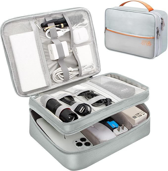 SELLYFELLY Electronics Travel Organizer, Double Layer Cable Organizer Bag Watreproof Electronics Accessories Storage Bag for Cord, Charger, Phone, Power Bank, Hard Drive