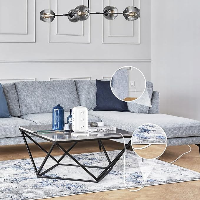 - Space-saving unique tower design: AOFO charging station adopts a unique vertical design, and the top adopts a delicate CD pattern design, so that your power strip are not monotonous, and you do not need to worry about the large plugs blocking each other, which helps you save space and is beautiful ;Choose this office supply to keep your desktop clean and beautiful