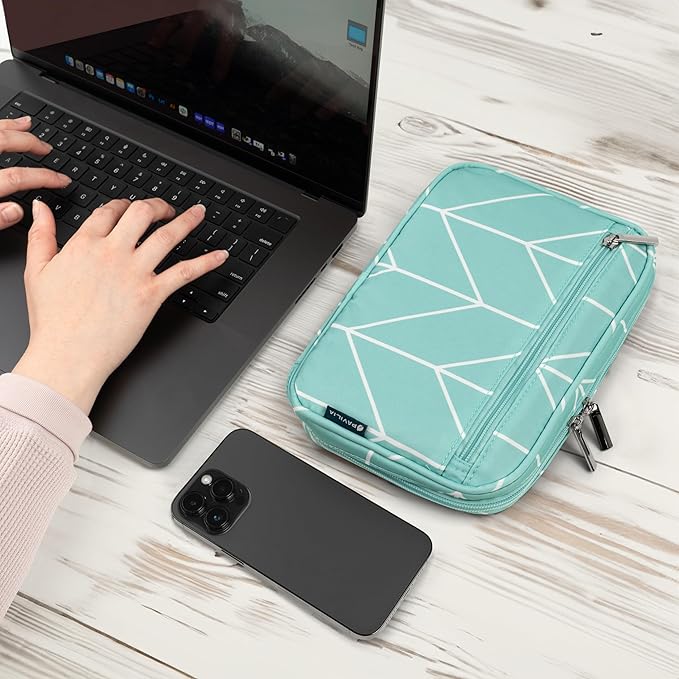 - CORD ORGANIZER TRAVEL ESSENTIAL: PAVILIA Blue travel cable organizer bag measures 10 x 6.8 inch, a must-have travel accessory. Whether you're flying overseas or exploring on the go, the travel electronics organizer bag keeps chargers, USB cables, power cords, and earphones in perfect order. With multiple compartments, the small tech bag safeguards digital accessories, ensuring protection and preventing damage. No more tangled cords and lost chargers with our cable travel organizer.