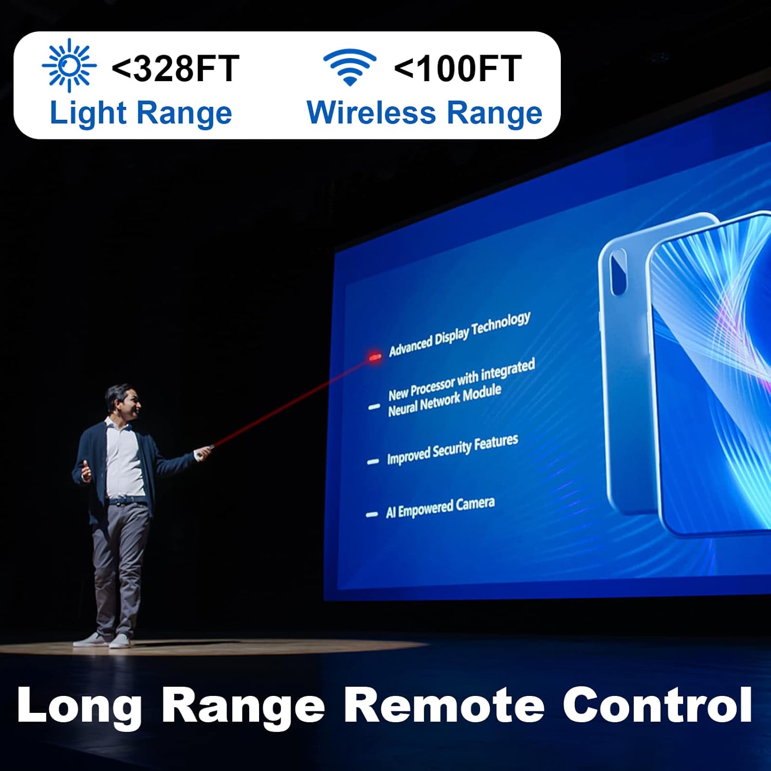 - [Long Range Control] Wireless presentation clicker for powerpoint presentations is a teacher must have for any classroom! It advances your Google slides without having to walk back to your computer. The red laser pointer is a nice addition which can help you keep students focused.