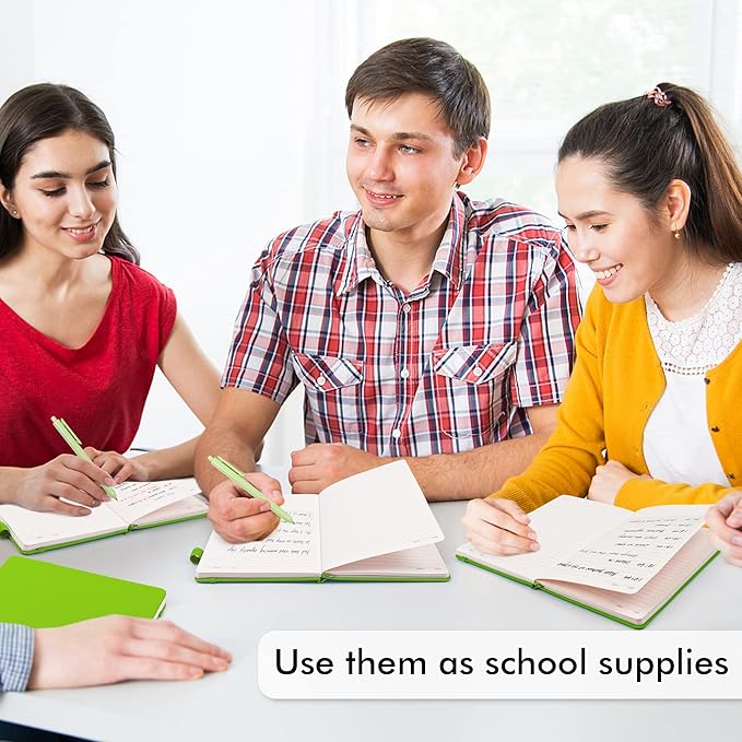 - Feela 12 Pack Classic Ruled Notebooks contains 12 green ruled sturdy cover notebooks and 12 Black Retractable Pens. Each of the notebooks measures 8.3” x 5.1”, which is perfect to carry and easily held by young girls and boys. These black cute pens are customized to be placed in the pen holder, which is pretty convenient.