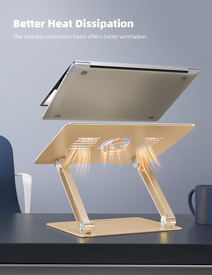 Lamicall Adjustable Laptop Stand, Portable Laptop Riser, Aluminum Laptop Stand for Desk Foldable, Ergonomic Computer Notebook Stand Holder for MacBook Air Pro, Dell XPS, HP (10-17.3'') -Gold