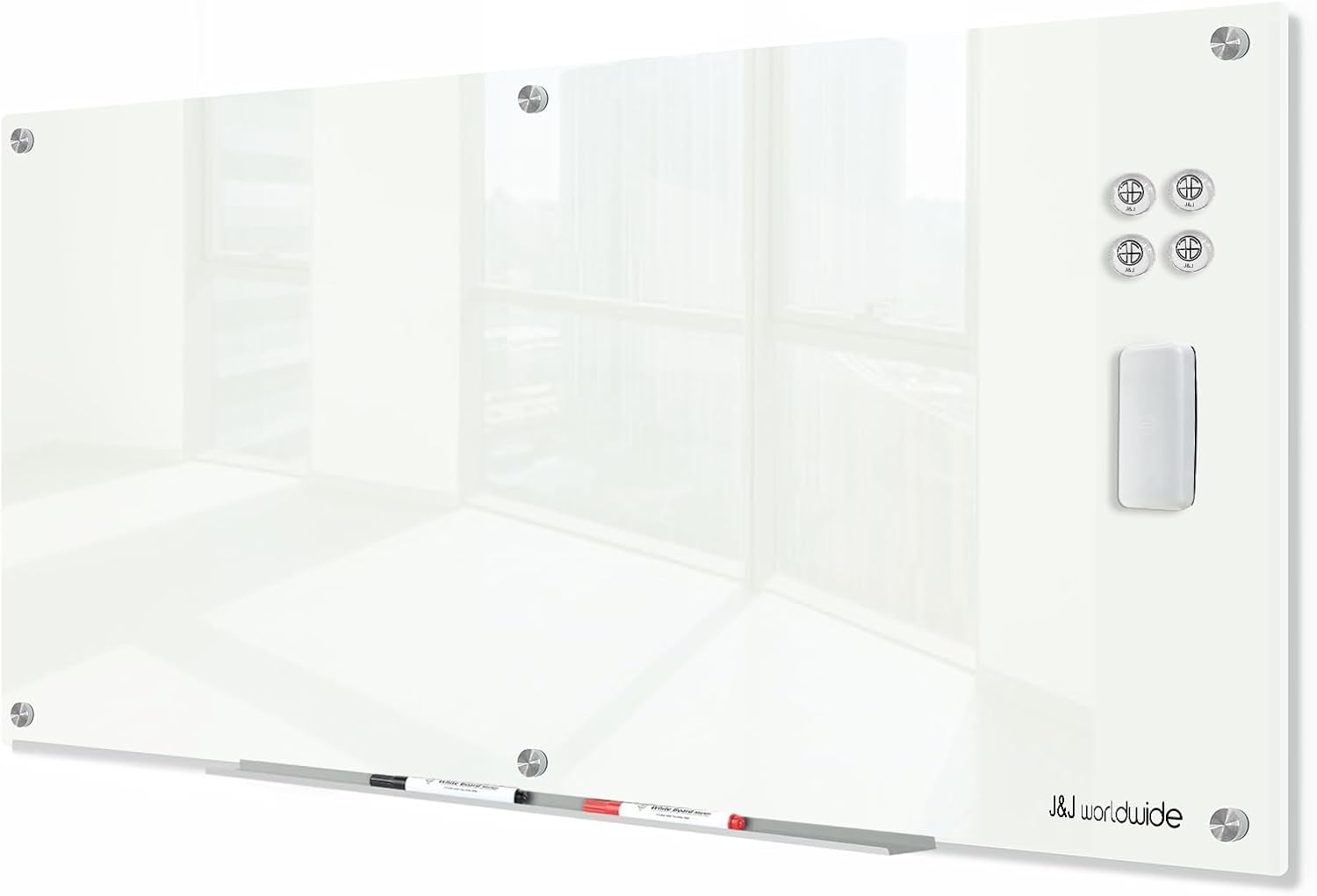J&J worldwide Glass Dry Erase Board 6' x 3', Glass Whiteboard Magnetic, Large Frameless Glass White Boards for Walls, Includes Magnets, Marker Tray, Eraser for Office, Home, School