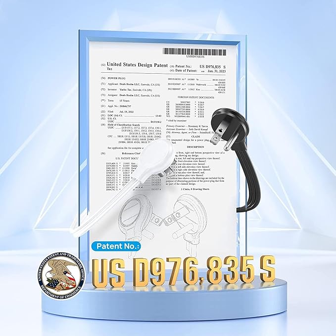 - Flat Plug Power Strip: The ultra-thin flat plug, measuring only 0.33 inches, is practical as it allows you to fit furniture more closely without wasting space. The 45-degree right-angled design ensures that the thin flat plug doesn't block the bottom receptacle of your duplex wall outlet, giving you extra room to use other outlets