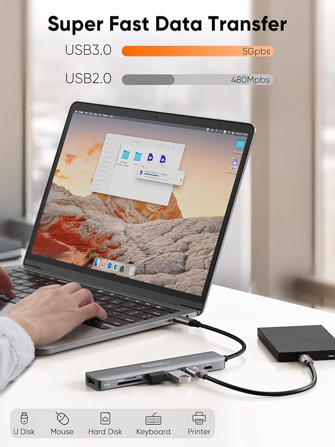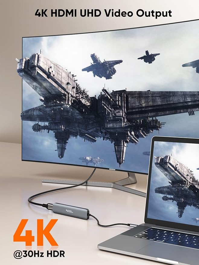 - 4K HDMI Video Resolution:USB C HUB 4K HDMI port supports media display at resolutions up to 4K@30Hz. Mirror or extend your screen via the HDMI port and directly stream a clear video image to HDTV, monitor, and projector. Perfect for presentations, office meetings, gaming and movies