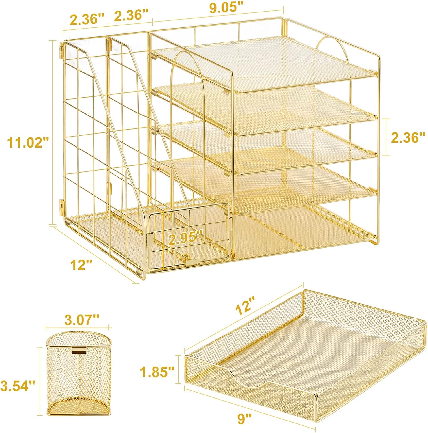 - 【Ideal Desk Organizer】Marbrasse newly releases the desk file organizer! The humanized office organization owns 5 sliding trays + 2 Magazine Holders + 2 Hanging Pencil Holders + 1 sliding drawer which tidies up your desktop and is convenient to your office! All the designs specialized to comply with your office, such a perfect supplies desk organizer must be the best choice for your office accessories