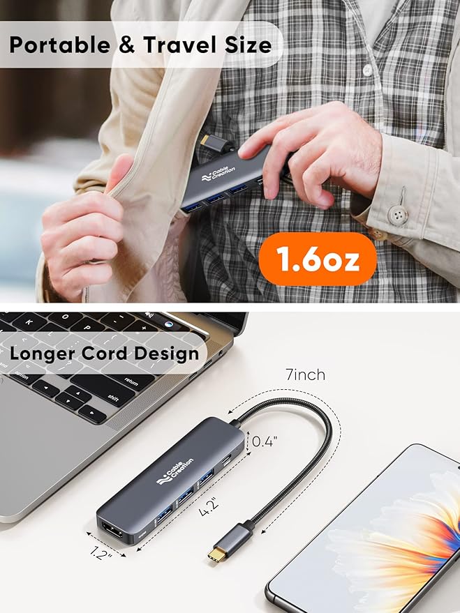 - What You Get: The package comes with the slim-sized usb-c hub that has a longer 7" attached cable, Sturdy aluminium casing, and a little carrying bag for it. CableCreation provides the item with 24 Months warranty, lifetime technical support, and friendly customer service