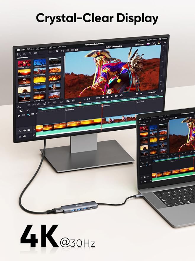 - 4K Vivid Display: It's simple to associate with a TV/Monitor with HDMI. USB C hub HDMI Mirror or extend your screen in a variety of resolutions up to 4K@30Hz via the HDMI port