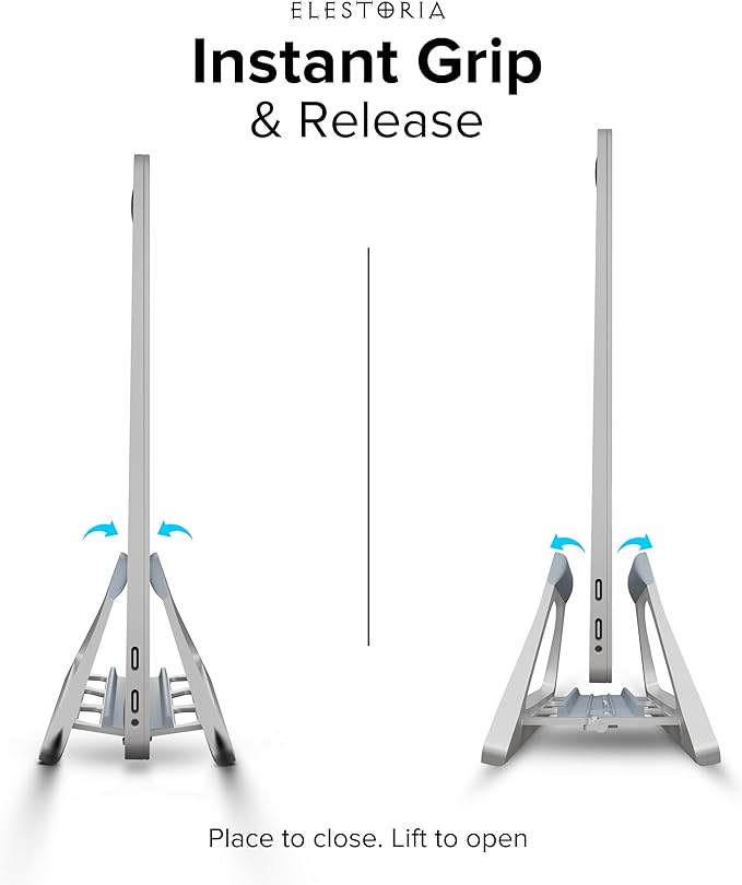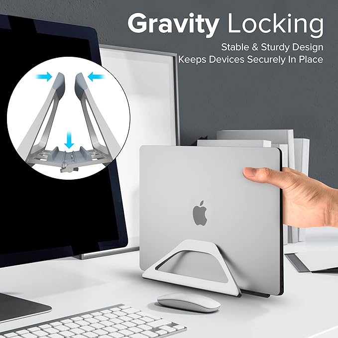 - SELF RELEASE MECHANISM - This vertical laptop holder is the perfect companion for the modern, on-the-go lifestyle. Its self-release mechanism makes it incredibly easy to use – lift your laptop, and the clasp will open up, no additional tools are required.