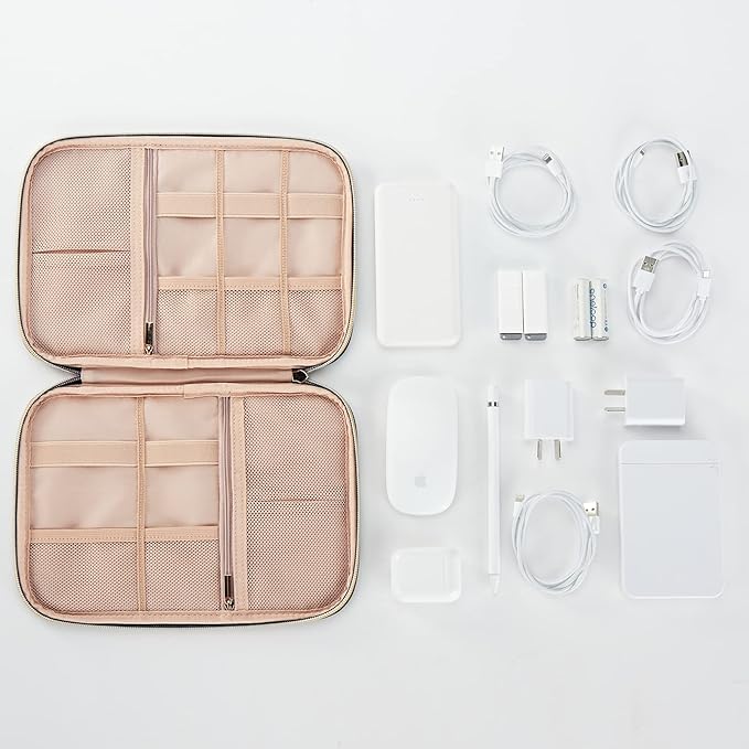 - LARGE CAPACITY-10.5×7.5×1.5inches(L×W×H); Spacious room for 4 cables, 1 mouse, 2 power bank(or potable hard drives, cables), 2 SD cards, 3 batteries, 2 USB drives and 1 charger