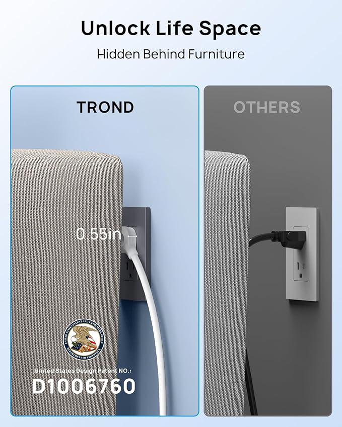 - 【Wall mountable & Space Saving Flat Plug】- 4 screw-mounting tabs(comes with screws) and 4 mounting holes on the back allow you to securely install this surge protector power strip in various applications. The low profile space-saving 45° angled flat plug doesn’t cover the bottom receptacle of a duplex outlet. 3-prong right angle flat plug for hard-to-reach outlets in tight spaces like behind your bed or sofa. This power strip is suitable for an entertainment center, behind the TV, dorm room, gue