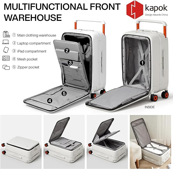 - 【Convenient】Quick access front open pocket with shockproof pad is effortless to open or close the suitcase, fit for 15.6” laptop, tablet, Books etc. Importantly, assist you save time.
