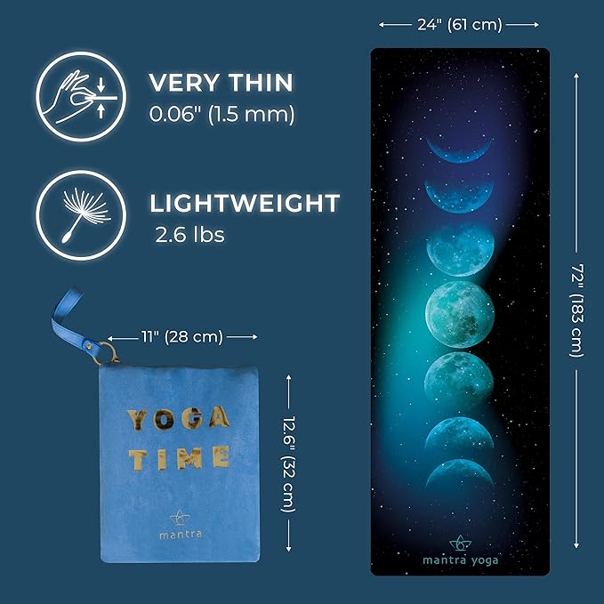 - ✈️ Compact and lightweight Yoga Mat – Looking for a yoga mat that's easy to take with you on the go? Look no further than Mantra Yoga's travel mat! Made from natural rubber and microfiber, this mat is thin and lightweight, making it perfect for practicing balance postures and maintaining a strong connection to the floor. The compact design makes it convenient to take with you on trips, use for outdoor training, or take to the studio. And when you're done, simply fold it up and tuck it away in the included small bag. With the purchase of this travel mat, you'll receive a bag for easy transport and storage. Order now and experience the convenience of a travel mat for yourself!