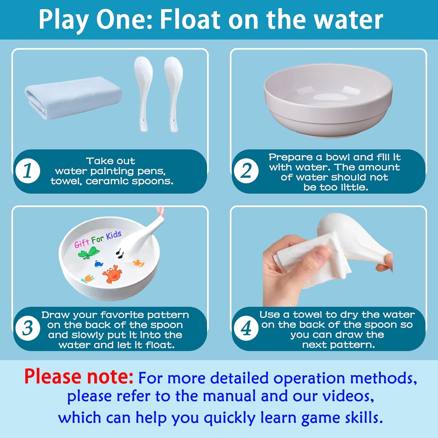 - ✅Interesting and Fun: Use this water floating pen to draw a picture on a spoon, when it encounters water, the drawn animal pattern will float in the water as if there is life, and you can stick it on your hand to make a simple tattoo. DIY drawing attracts children's attention and curiosity and cultivates children's patience. Mom, dad, and children can participate in paintings together, and parent-child interaction experience handmade fun!