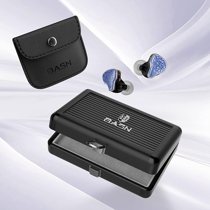 BASN Bmaster5 in Ear Monitors, 1DLC Diaphragm+4BA 5 Drivers IEM Earphones with Silver-Plated OFC Cable, Noise Isolation Wired Earbuds for Musicians (Baltic Blue)