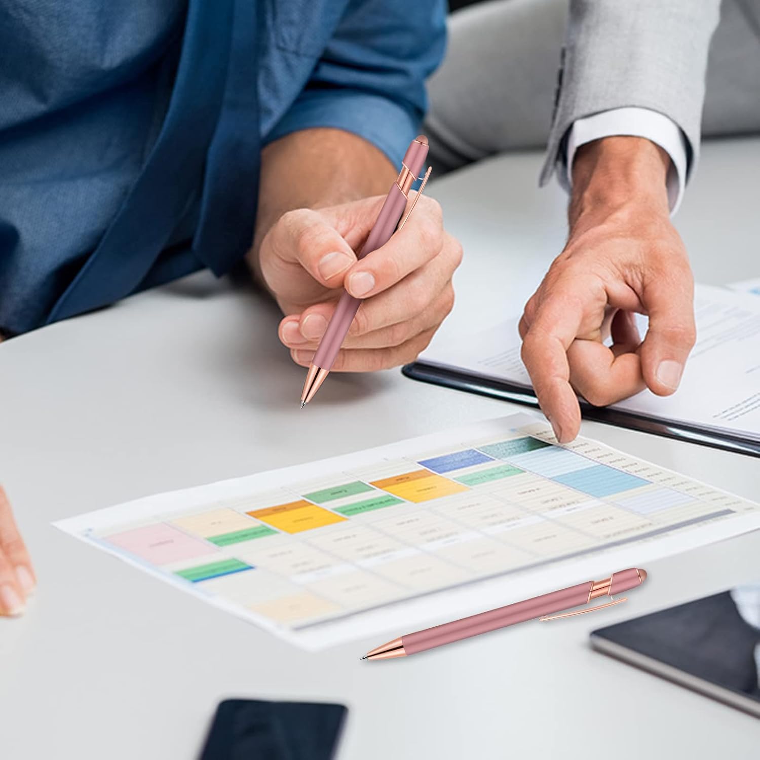 12 PCS 2 in 1 Stylus Ballpoint Pen with Stylus Tip, 1.0 mm Black Ink Metal Pen Stylus Pen for Touch Screens (Rose Gold & Gold)