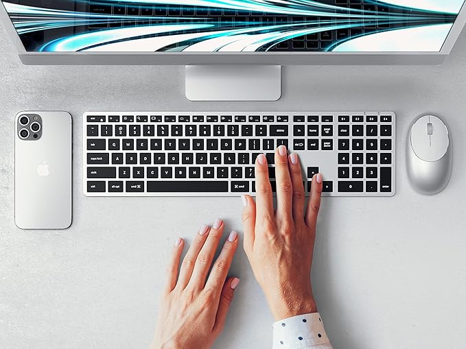 Satechi Slim X3 Bluetooth Backlit Keyboard for Mac, Illuminated Keys & Multi-Device Sync, for MacBook Air/Pro M4, iPad Air/Pro M4/M3, iPad mini, Mac mini, iMac - Silver