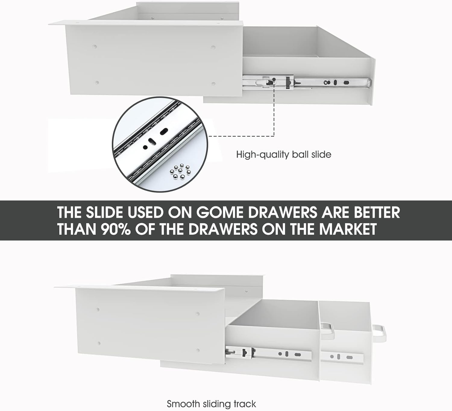 GOME White Under Desk Drawer Storage with Laptop/Book/Folders Shelf, Double Layer Easy Slide-Out Undermount Drawer Organizer with Ball Sliding Track for Home Office Sit-Stand Workstation