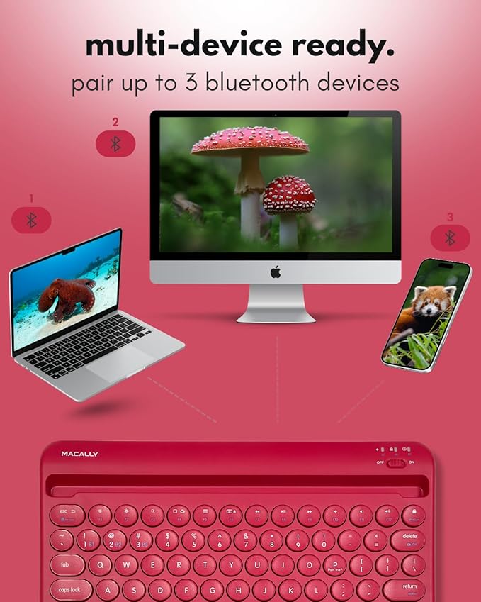 - Sync and Switch Between 3 Devices: Enjoy seamless multi-device use and switch between 3 devices simutaneously with our wireless keyboard for tablet or smartphone, computer, tv, and etc.