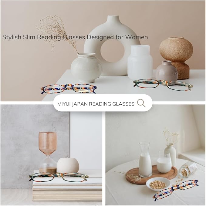 - READERS FOR WOMEN - MIYUI JAPAN reading glasses feature lenses that block blue light and provide UV400 protection. Ideal for screen users, they reduce digital eye strain and sleep disruptions, enhancing visual comfort and well-being.