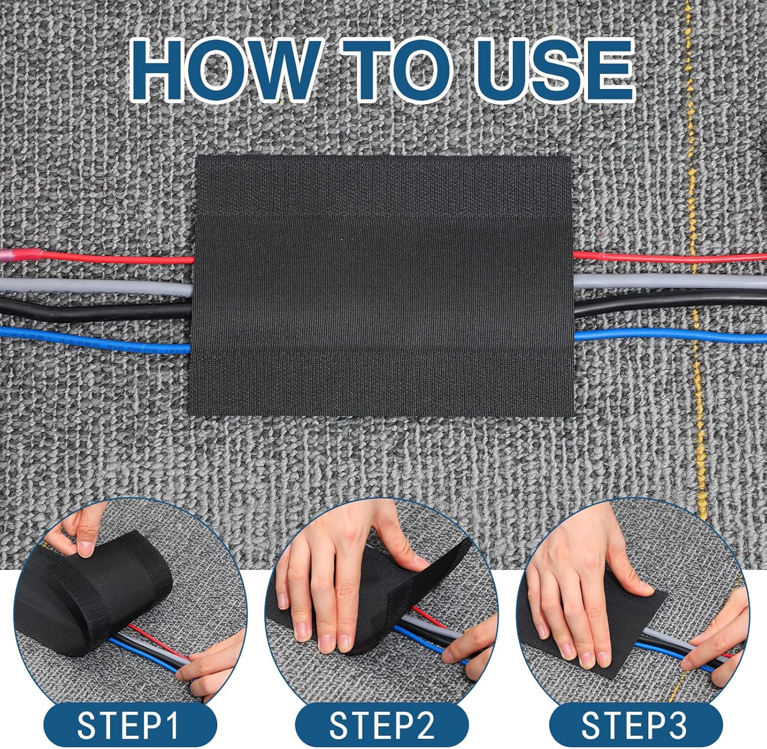- Easy to use: the floor strip is designed in hook and loop design, grips well and easy for cutting to the length that you require; Pinch cables, just lay on the carpet, simple 3 steps, its over