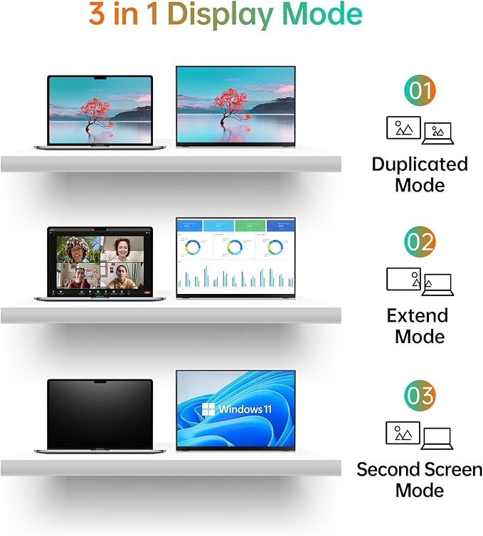 - Give consideration to work and games - through multiple display modes [Copy Mode/Extended Mode/Second Screen Mode/Portrait Mode], we can bring you a clear second screen in the meeting, and expand the screen anytime and anywhere to improve work efficiency and improve the quality of life. Adjusting to HDR mode can upgrade the image to a new level, providing you with brighter highlights,deeper and more realistic colors, more realistic images, and amazing viewing/gaming experience.