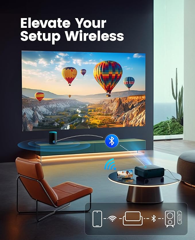 - ➤[The First Wi-Fi 6 Projector] P62 phone projector is equipped with Wi-Fi 6 technology, compatible with both 2.4GHz and 5GHz networks, offering a maximum rate of up to 9.6Gbps. Enjoy seamless screen casting with Wi-Fi 6 from, supporting AirPlay (iOS) and Miracast (Android & Windows). Relive family moments by sharing photos and videos on the big screen effortlessly. As a home projector, we also strive to minimize latency during gaming on devices like the Nintendo Switch or PS5.