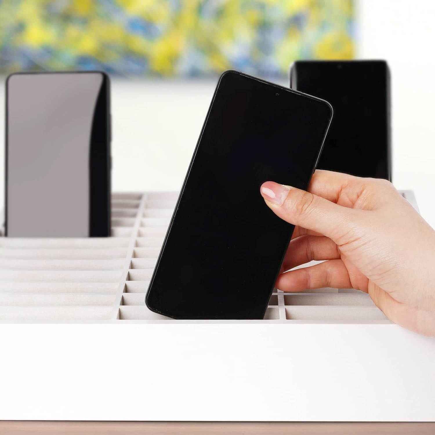 - 【Wide Range of Applications】 This cell phone organizer is not only for school, but also can be used in office, meeting room, educational institution, mobile shop, etc. To make the desktop more tidy and orderly. This wooden cell phone holder can also be used as a mobile phone charging station.