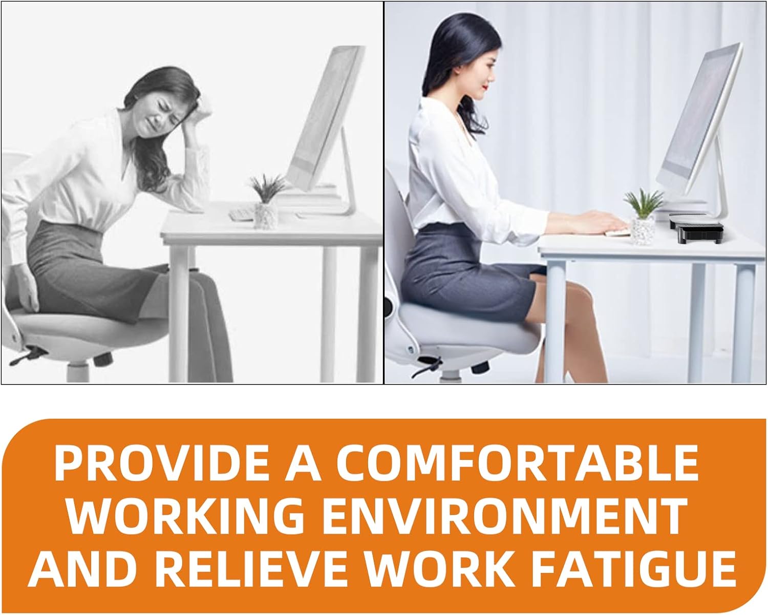 - Scientific Layered Storage Design - Double layer Space Layout: The upper layer lifts the screen to a comfortable viewing angle (increased by about 9.25 inches), and the lower layer shelf has a depth of 5.7 inches, making it easy to store keyboards, stationery, and other miscellaneous items.