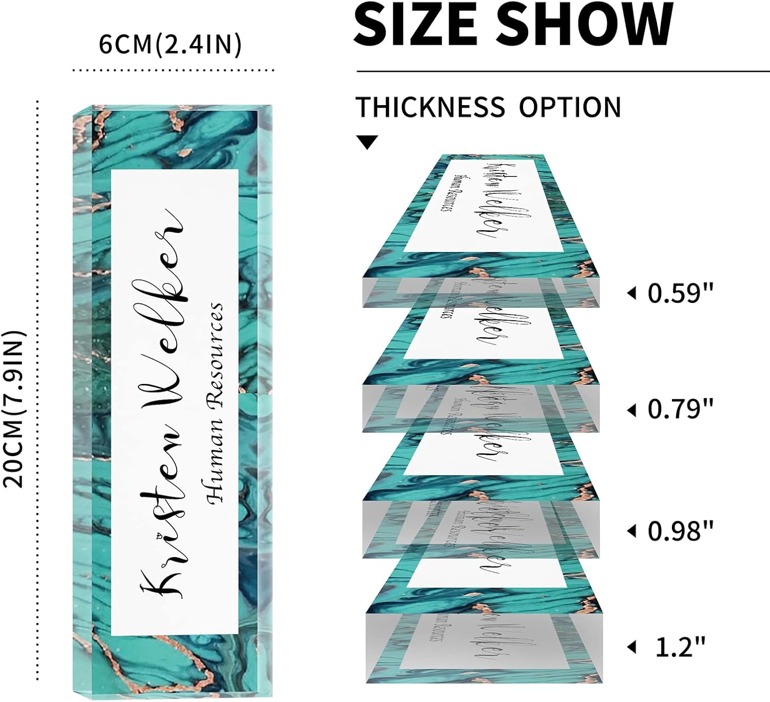 - HIGH QUALITY - The Personalized Name Sign Plates Are Made Of High Quality Crystal Clear Acrylic Blocks. This Office Nameplate Will Stand Out On Any Desk!We use high-tech UV printers to print on quality clear acrylics glass so you can visualise your memories.