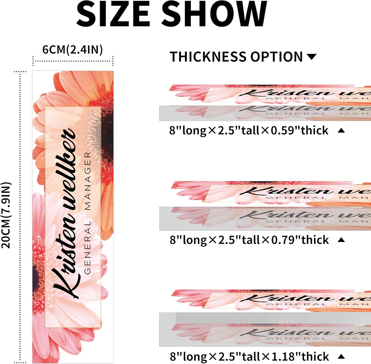 - 🎁Premium Quality: The personalized name sign plates are made of high quality crystal clear acrylic blocks. This office nameplate will stand out on any desk! We use high-tech uv printers to print on quality clear acrylics glass so you can visualise your memories.