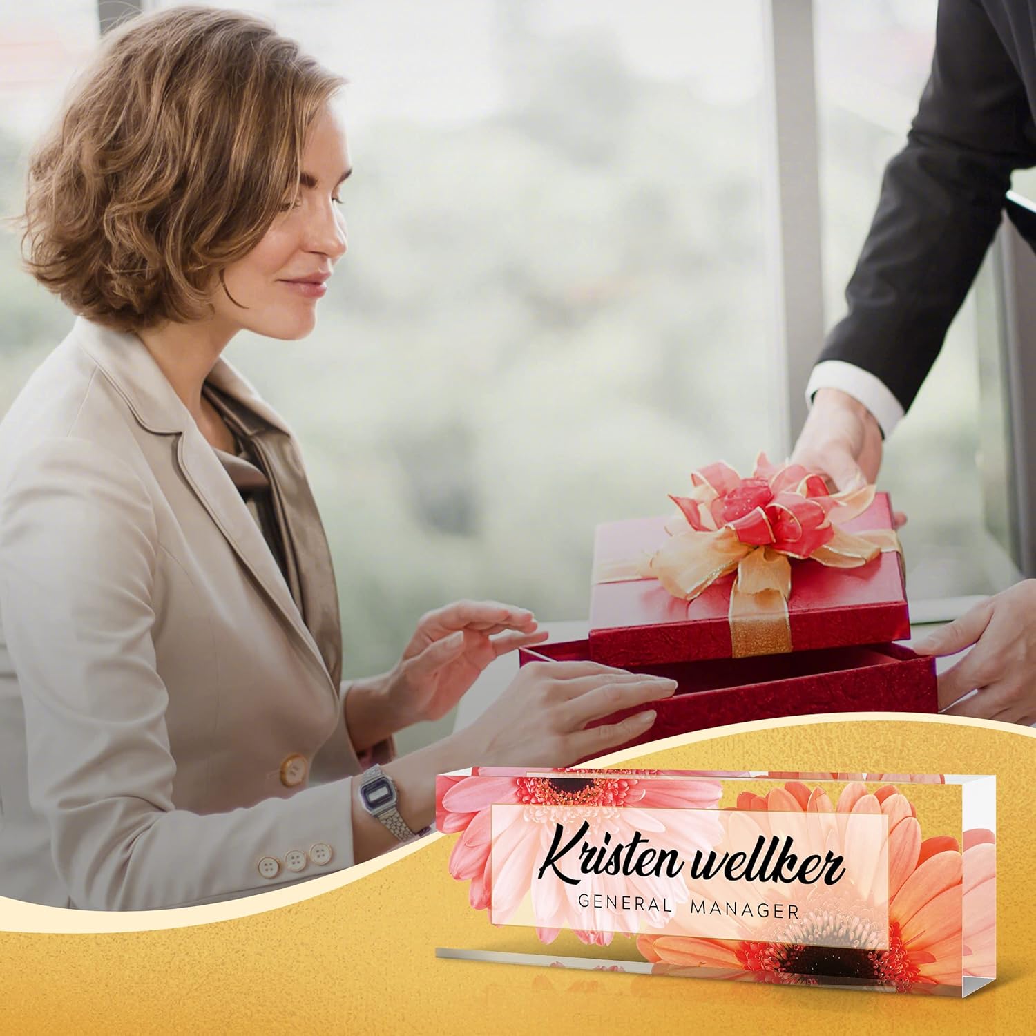 Desk Name Plate Personalized, Premium African Daisy Acrylic Desk Name Plate, Personalized Name Plate for Desk, Office Decor for Women or Men Coworkers, Boss, Employee, Teacher