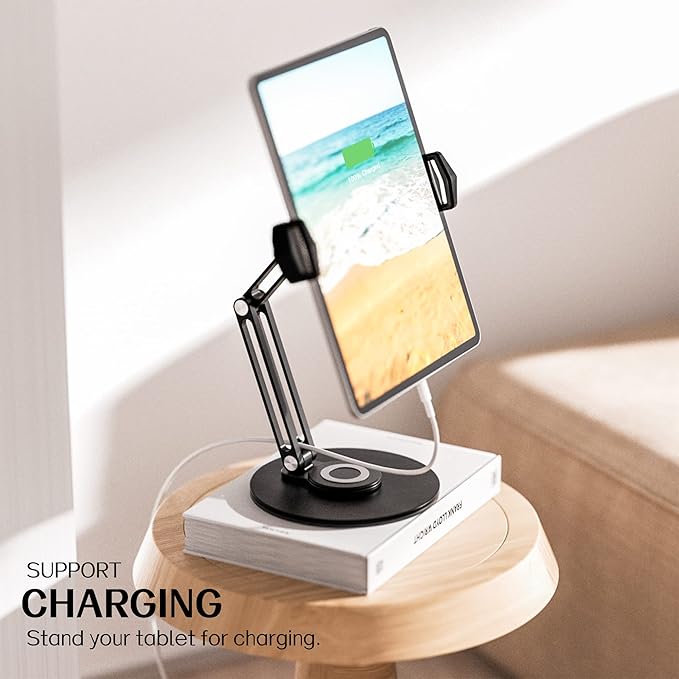 - 【Highly Flexible】 The 360° rotatable base and tablet bracket holder combined with a folding arm offer unparalleled adjustment for typing or showcasing without missing any viewing angles. Quickly turn display screens between you and your partners or switch landscape/portrait mode.
