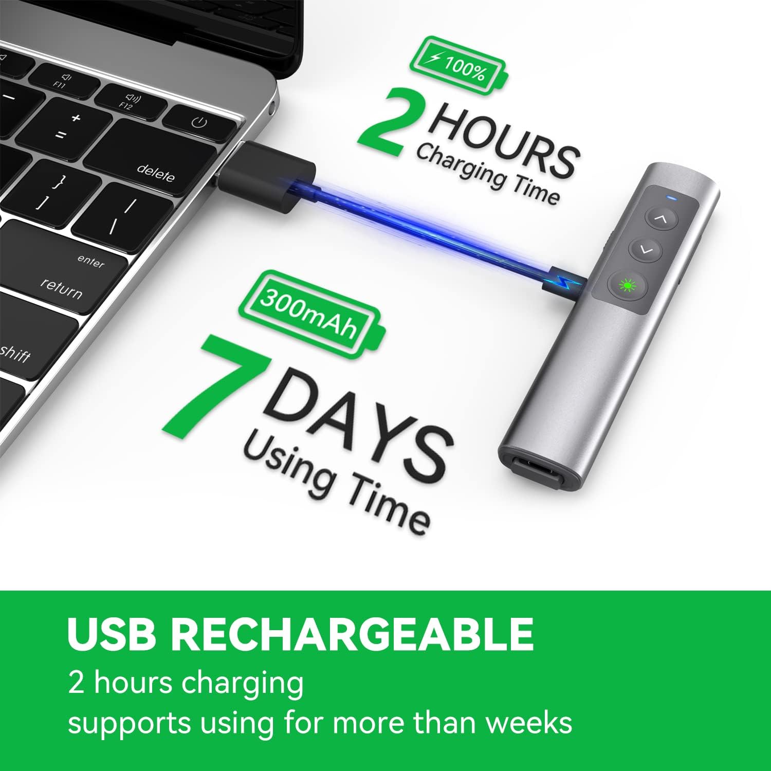 Metallic Presentation Clicker Presenter Remote - Rechargeable Wireless Presenter with Green Laser Pointer, 2 in 1 USB Clicker for PowerPoint & Google Slides, Compatible with MacBook/PC