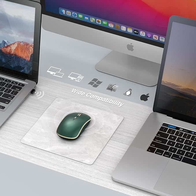 JOYACCESS 2.4G Slim Wireless Silent Mouse, Portable Wireless Computer Mouse with 5 Adjustable DPI Levels, USB Mice for Desktop, Notebook, MacBook, Chromebook, PC (Green)