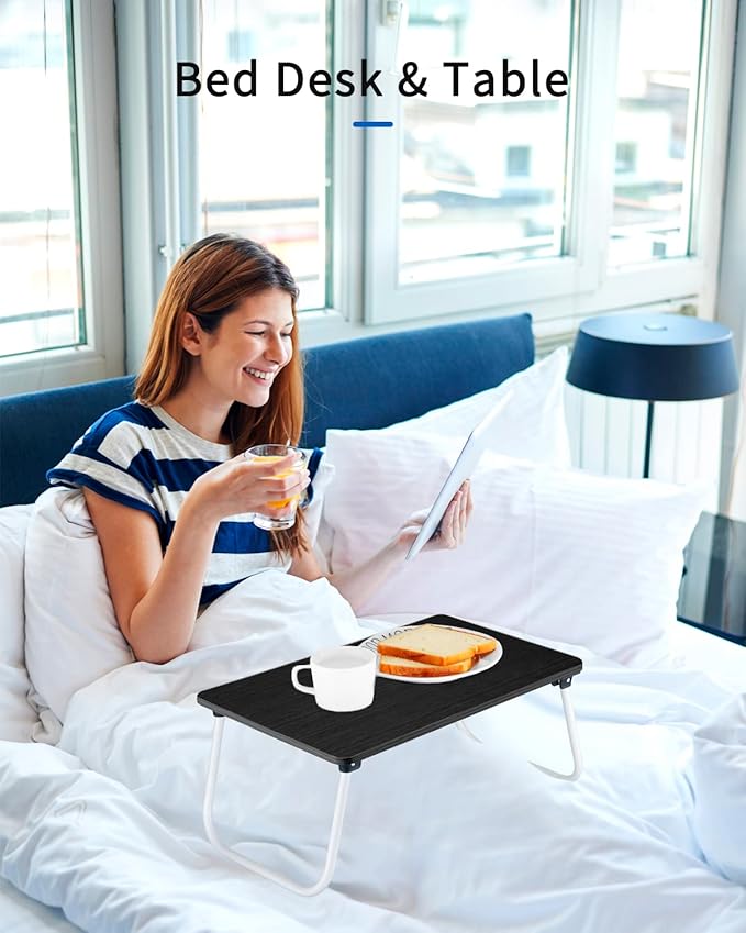 Ruxury Folding Lap Desk Laptop Stand Bed Desk Table Tray, Breakfast Serving Tray, Portable & Lightweight Mini Table for Sofa Couch Floor - - Black