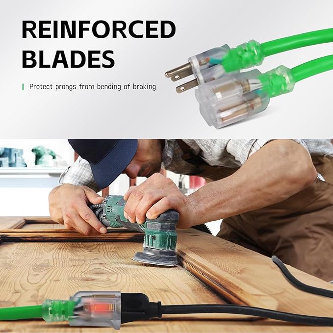 - LED Lighted End for Convenience: Equipped with an LED indicator, the lighted end glows when powered, making it easy to locate in the dark and confirming when the cord is ready to use. Perfect for nighttime projects or outdoor setups