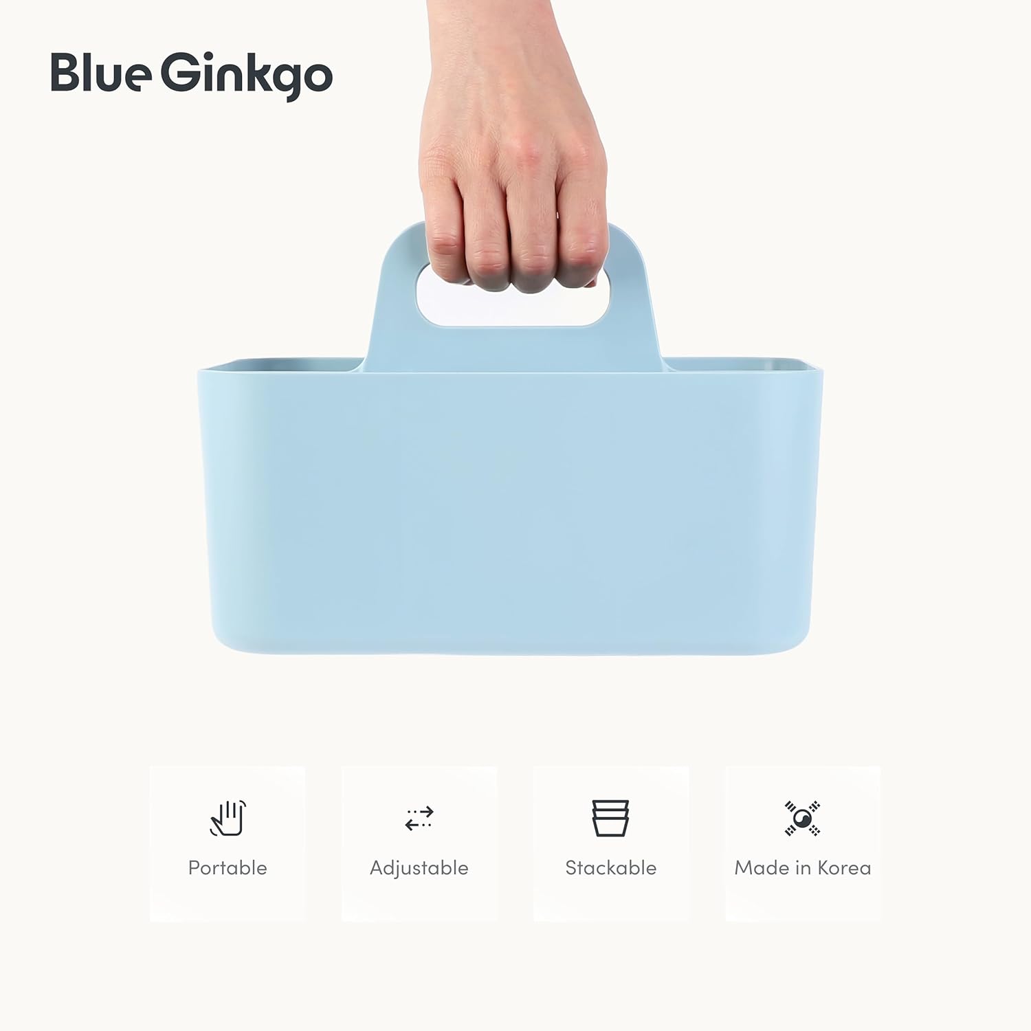 BLUE GINKGO Stackable Organizer Caddy – Korean-Made Portable Tote for Bathroom, Office, Crafts, or School Supplies (Rectangle, Blue)