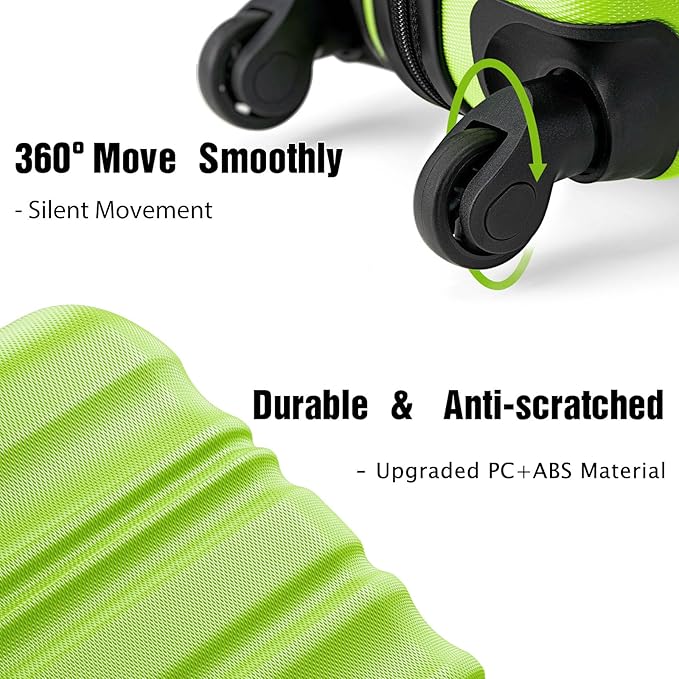 LONG VACATION 6 Piece Luggage Set Carry on Suitcase with ABS+PC hardshell, Spinner Wheels & YKK Zipper TSA Lock (APPLE GREEN, 6 piece set)