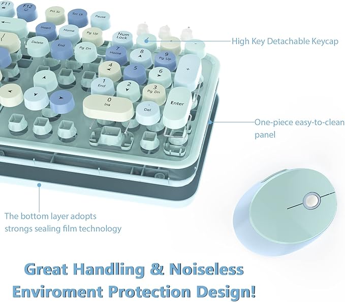 - Retro Round Keys Cute color rounded keycaps with scissor-switch design, silent to press and rebound quickly, bring you visual enjoyment and provide comfortable touch of the fingers, enhance the total smooth typing experience