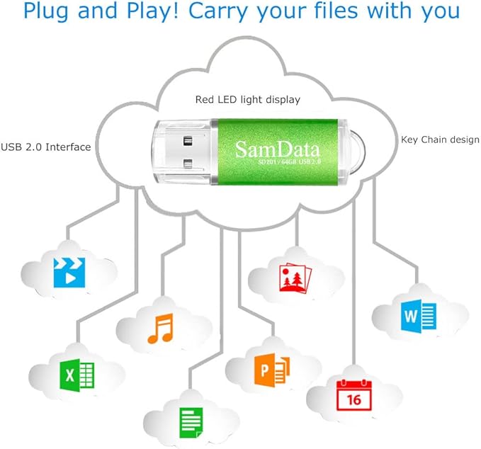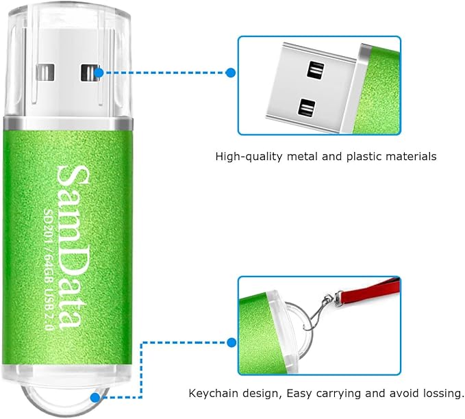 - [Good Value Package] 1 Pack 64GB USB 2.0 Flash Drive Thumb Drives Available in Green.