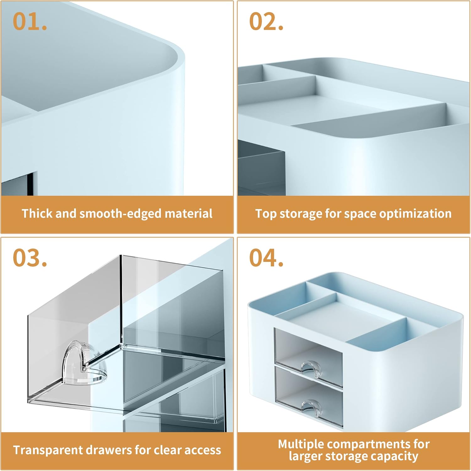 Marbrasse Pen Organizer with 2 Drawer, Multi-Functional Pencil Holder for Desk, Desk Organizers and Accessories with 5 Compartments + Drawer for Office Art Supplies (Blue)